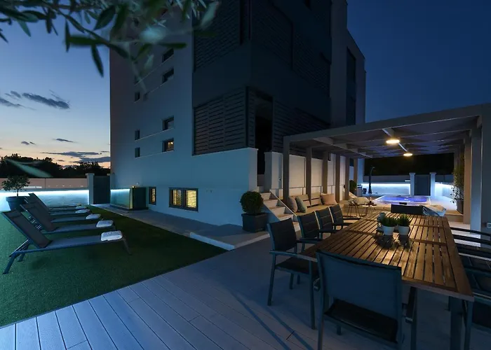 Apartmán Lazy - Luxury Apartment Zadar Yachting je plážové ubytování, které má terasu s výhledem na zahradu. Ubytování zahrnuje 3 ložnic a 3 koupelen.